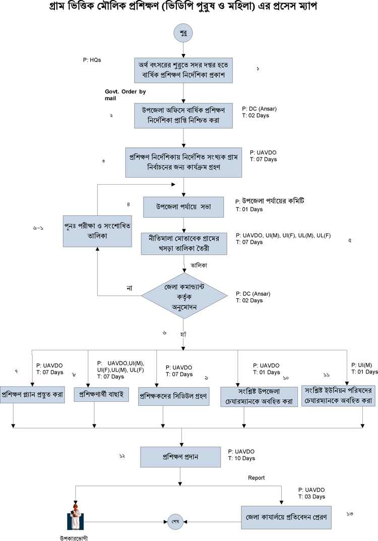 | ৪ | সাধারন আনসার মৌলিক প্রশিক্ষন (পুরুষ ও মহিলা) এর প্রসেস ম্যাপ | দেখুন | |